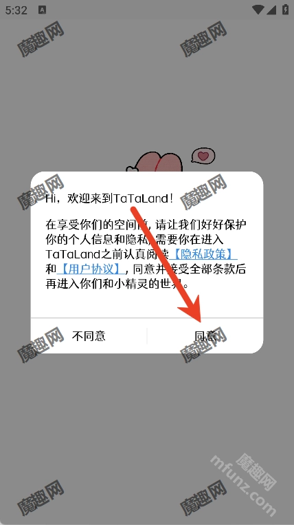 1、打开tataland软件点击同意