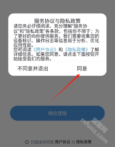1、打开twime软件点击同意相关协议政策