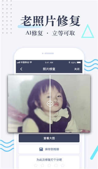 那些承载着岁月痕迹的珍贵老照片,往往因时光流逝而变得模糊。好在有照片修复功能,它能自动对照片进行修复处理,提升画面清晰度,让老照片的原有风貌得以完美重现。
