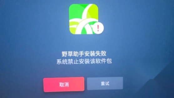 解决方案:小米设备与海信设备需分别使用野草助手的小米版和海信版专用安装包。