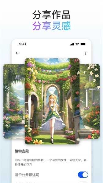 3、文字生成画作功能,用户只需输入文字内容来传达想法,系统就能据此生成对应的画作。