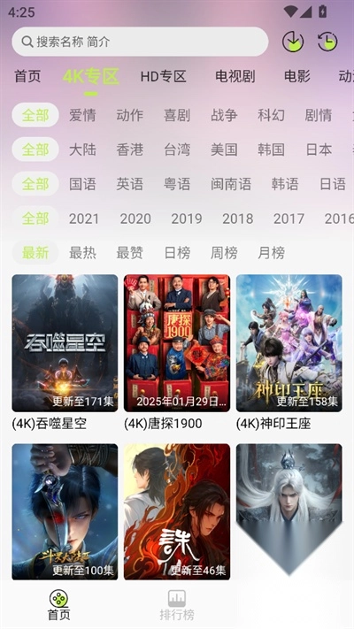 新增4K专区资源标签,便于快速筛选片源。