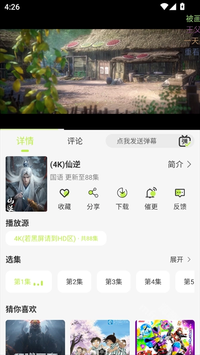 -支持选集、弹幕互动、投屏及全屏播放。