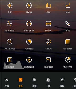2、调色有16个小功能,可以根据个人调节照片