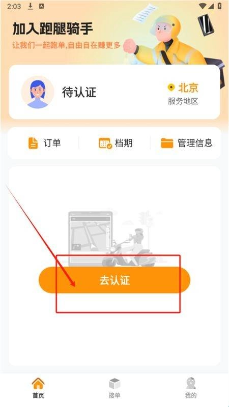 5、要开始接单需先完成认证,点击“去认证”按钮即可进入认证流程并完成认证。