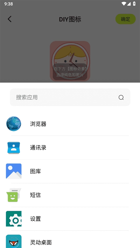 2、然后在diy图标页面中,点击并选择你希望进行链接的应用。