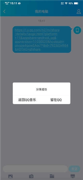 4、分享完成,选择留在QQ