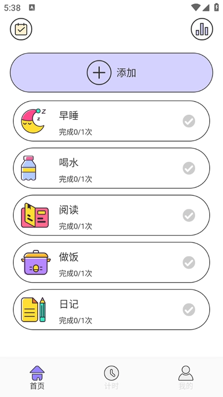 3、在软件内的计时板块,可以添加习惯,进行计时。