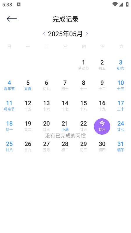 2、在习惯列表里,点击已完成的习惯就能标记打卡,系统会自动把记录同步到日历中。