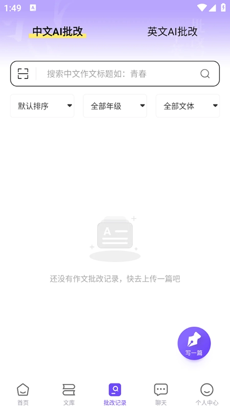 3、批改记录里可以上传作文进行批改。