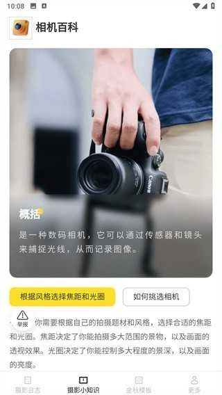 3、相机百科知识涵盖了各类相机的性能、历史等内容,能为你的选择提供便利。