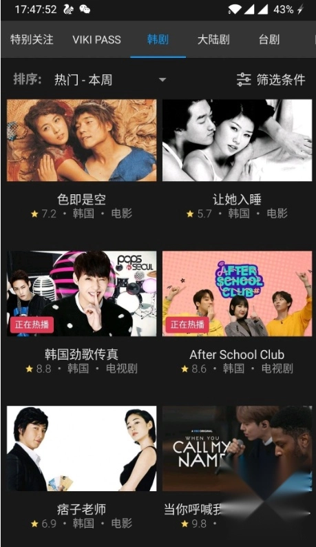viki是一款汇集了全球电影、电视资源的影视应用程序,它提供超过150种语言的字幕翻译服务。用户可以在viki中便捷地找到国产电影或电视剧,并且能够选择用于语言学习的字幕,如此一来,既能体验观影的乐趣,又能提高外语能力。viki上的全球视频节目均可免费观看,还能依据热门、本周更新等筛选条件来查找影视内容。