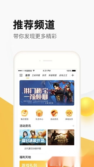 3、游戏资讯:热门活动、独家快讯、高玩攻略、精彩视频、美女八卦,一手资讯助你轻松成为游戏达人。