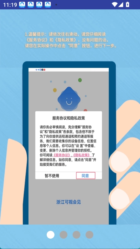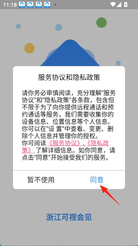 1.打开浙江可视会见,点击同意