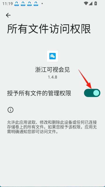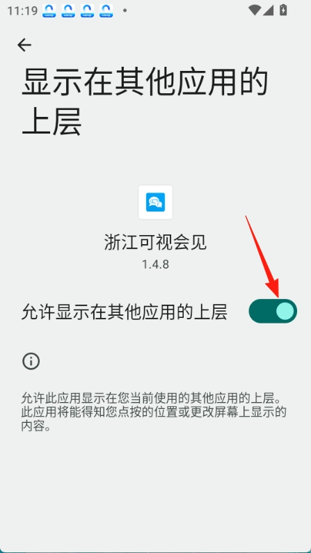 4.找到“浙江可视会见”进行勾选授权“悬浮窗”权限设置。