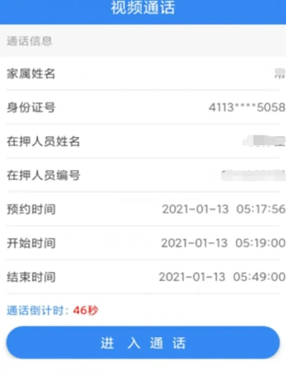 按照预约时间打开,进入视频通话界面等待会见开始。