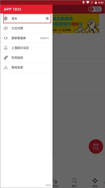 3、如果想重新设置语言,可以点击左上方的三横图标,点击“语言”重新设置。