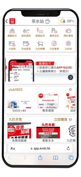 首先乘客在手机安装及登入最新版本的九巴及龙运智能手机应用程式--1933kmb,可在手机获得包括不同区域的九巴及龙运路线的预报到站时间资料,以计划行程。
