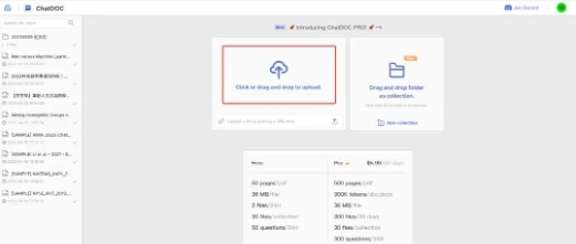 (4) 上传文件(支持PDF格式):可通过单击选择或拖放方式上传PDF文件,当前限制为单个文件不超过36MB、页数不超过200页,且每24小时最多上传5个文件。