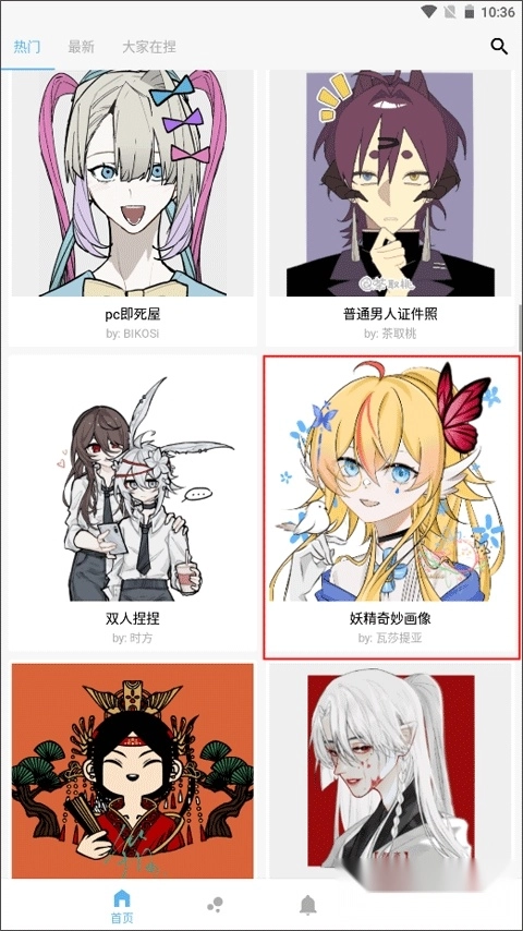 浏览首页,向下滑动,选择一个喜欢的作品,点进去就可以愉快捏捏了!