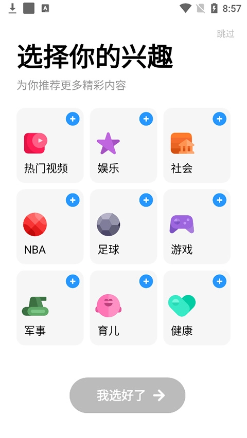 1、打开uc旧版本,可以根据自己喜欢的内容选择兴趣。