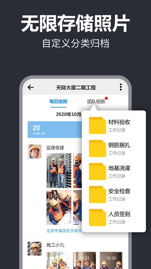 2、在加水印打卡相机中的各种拍照水印都是同步团队的,为用户的日常工作提供了很多的便利。