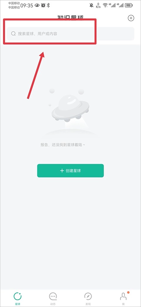 1、打开,在首页中的搜索框中搜索别人的星球名称、用户或内容
