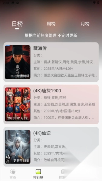 5、还会根据全网热度整理最新的影视排行榜单。