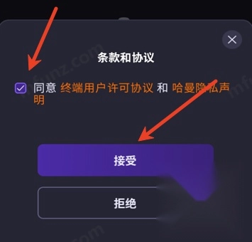 1、打开JBL Quantum 勾选协议并点击接受