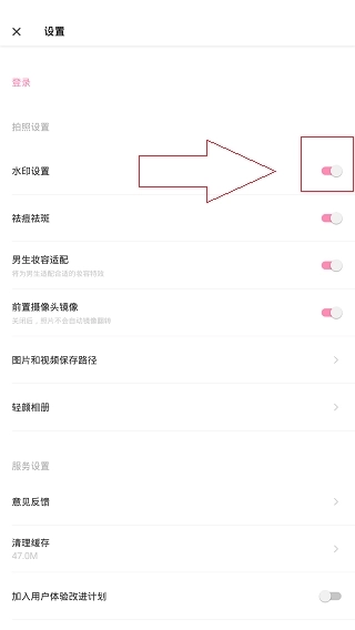3、找到并关闭“水印设置”选项,如此一来,拍摄的照片就不会带有水印了。
