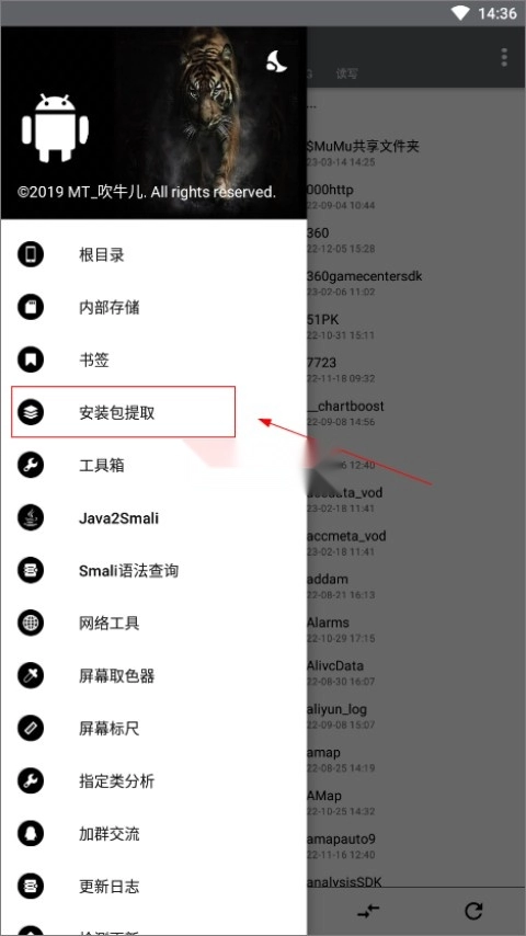 2、在功能菜单中,找到并点击“安装包提取”选项