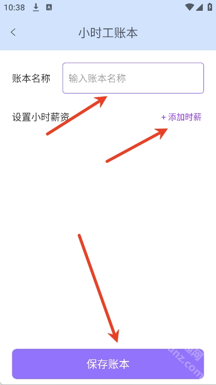 5、输入账本名称、设置小时薪资,点击保存账本即可