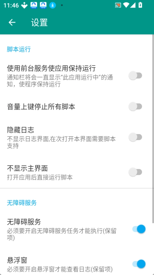 -必须开启无障碍服务才能执行脚本(保留项)。