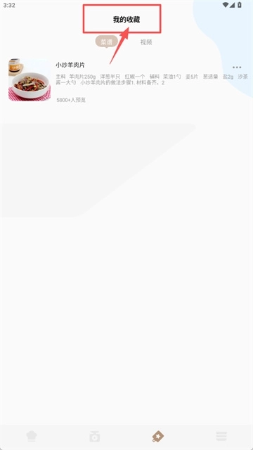 4、点击“我的收藏”,即可查看已收藏菜谱的食材信息与做法步骤,页面底部设有功能图标。