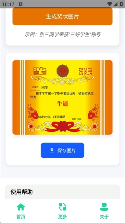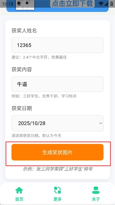 输入好生成奖状的内容后点击下方的生成奖状图片