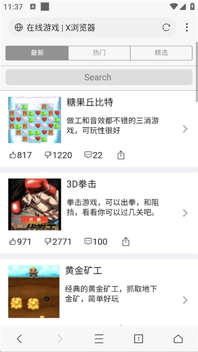 爱坤浏览器是一款高速浏览器软件,借助它你能快捷访问京东、淘宝等热门网站内容,无论是输入网址还是关键词搜索,都能快速找到你想了解的信息。而且在最新版本里,它还新增了在线游戏快捷访问功能,你可以在这里发现大量有趣的H5在线游戏。
