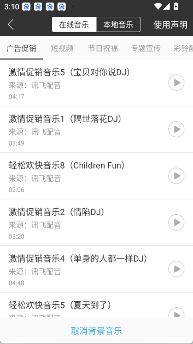 3.支持为配音作品添加正版背景音乐,以此有效增强作品的丰富度和吸引力。