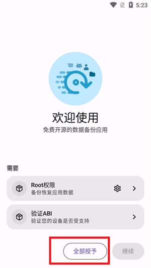 1.打开软件后点击全部授予