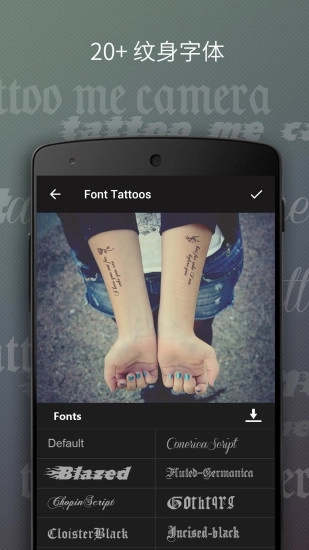 纹身相机是一款能帮助用户在线挑选最适合自己的纹身,轻松变身纹身达人的软件。它完全免费,也不耗费任何时间,用户只需选好心仪的纹身样式和想要纹在身上的位置,就能在身体的各个部位模拟出纹身效果。软件里有丰富的男女艺术纹身图案和字体可供自由选择。