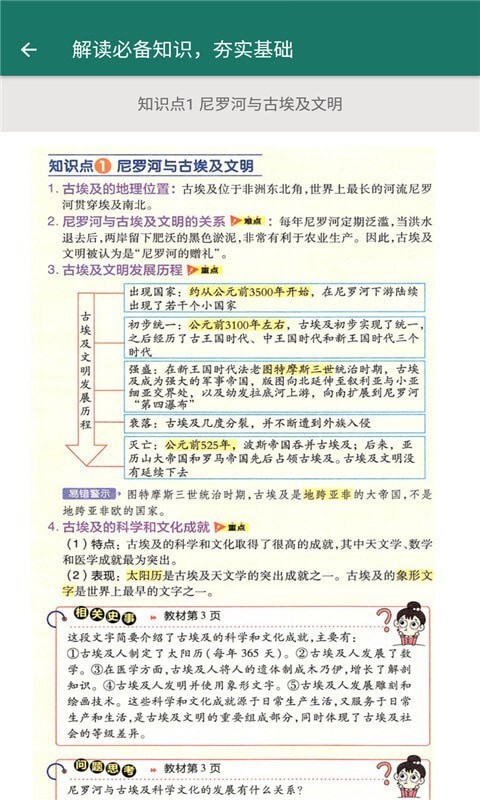 1. 教材同步学习:依照九年级历史教材的章节编排顺序,给出详尽的课文解读、知识点梳理以及重点难点剖析。