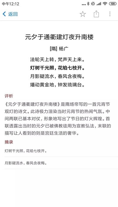 3. 诗词赏析:为用户呈现诗词的原文、注释、译文以及创作背景等内容,助力用户对诗词进行深度解读。