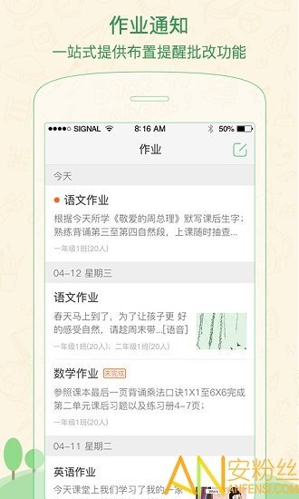 3、作业管理与统计功能强大,老师们能够随时随地掌握学生的作业提交与完成情况,关注到每一位学生的学习动态