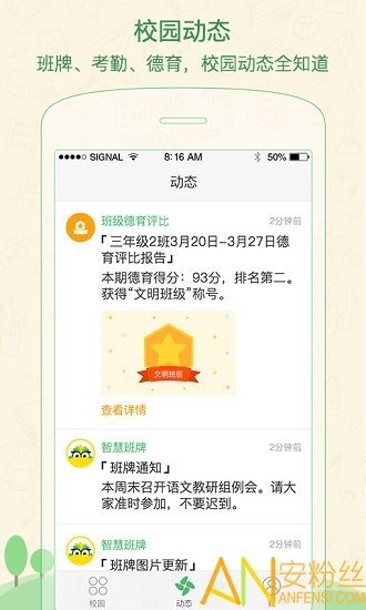 1、助力家长及时掌握孩子动态,以便更高效地配合老师教学工作;支持以图文形式提交作业,方便家长随时拍摄、即时上传。