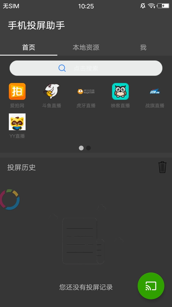 由于目前没有电视可供测试,我通过上网查询和实际体验后发现,这款产品整体表现相当不错。它支持斗鱼、虎牙、映客、战旗等多个主流直播平台,同时具备投屏本地视频、图片及音频的功能,操作也十分便捷——只需点击下方绿色按钮即可完成连接,不过需要确保手机与投屏设备处于同一网络环境。此外,该产品完全免费,且无任何广告干扰。