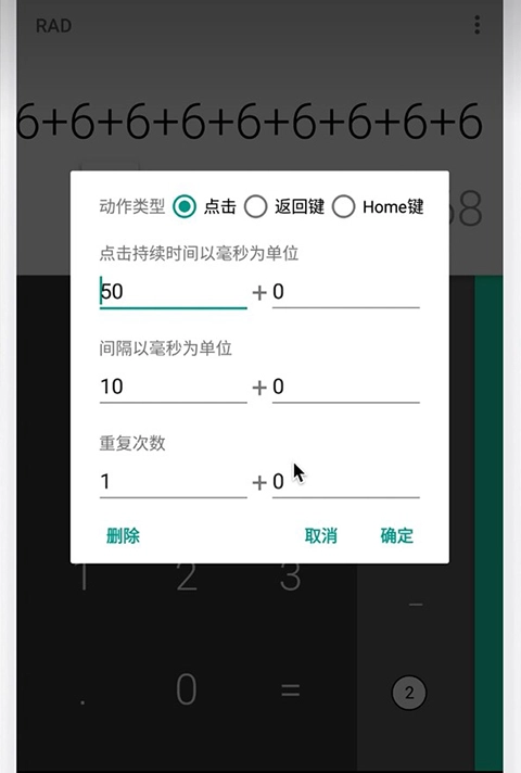 4、能够针对点击操作单独设置各项参数,比如单次点击的延迟时间、触摸持续时长以及重复执行的次数。