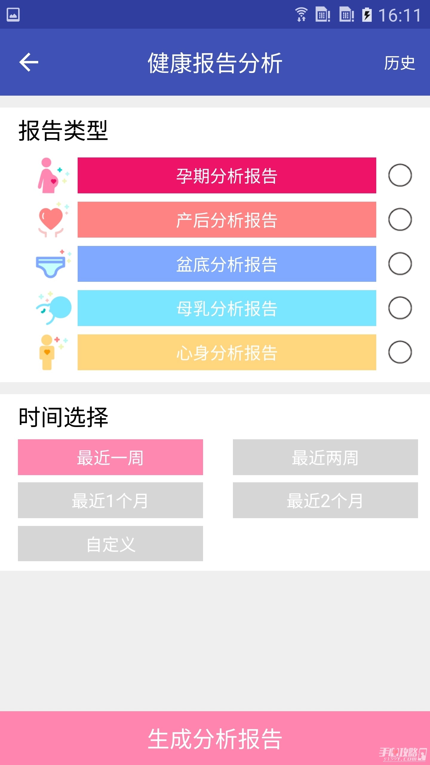 健康报告查询便捷,孕期分析报告、母乳分析报告、心身分析报告等均可查看。