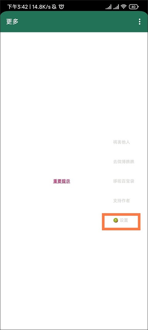 我们再回到【更多】页面,找到设置并点击进入应用列表界面。