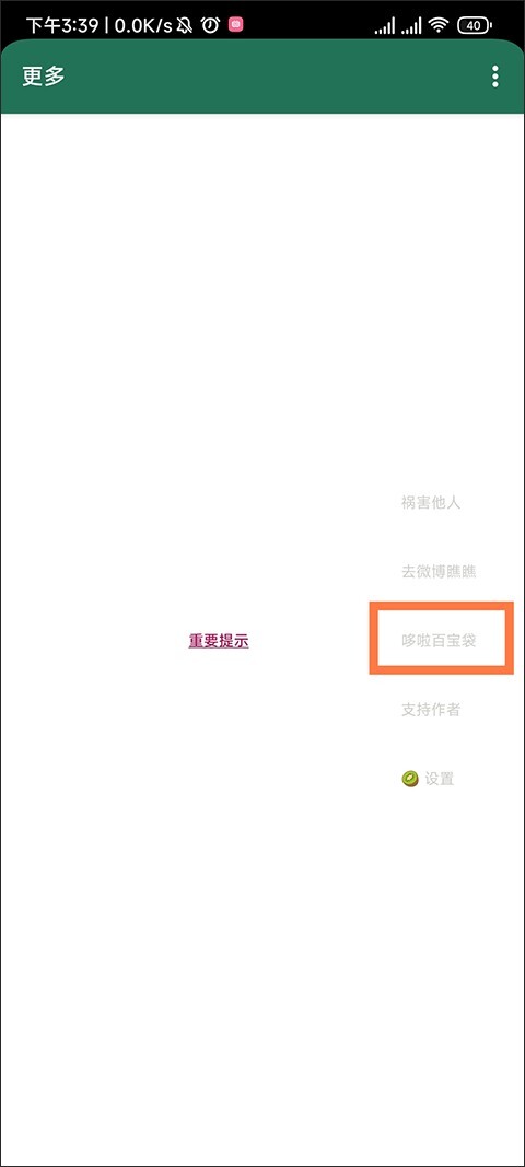 点击首页的“更多”按钮进入【更多】页面,该页面包含多种功能,选择并点击第三个功能“哆啦百宝箱”即可。