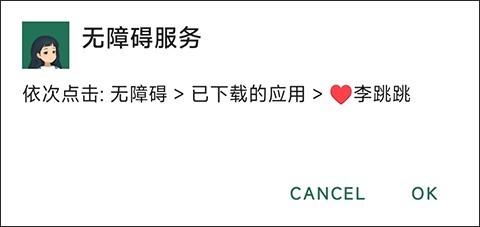 点击后会弹出开启无障碍服务的操作步骤,我们只需点击ok,系统就会自动跳转到设置界面。