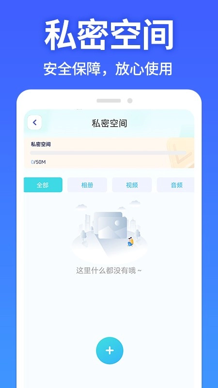 2、添加需隐藏的照片。可直接在隐藏相册里点击加号,添加要隐藏的照片;